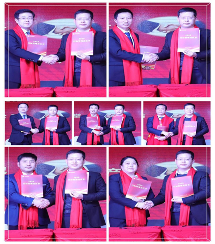 在介紹集團組織框架和集團、各子公司高管后,各位高管與郭雅磊總裁簽訂《目標管理責任書》,部分單位的高管帶領管理團隊進行工作動員表態(tài),向集團保證完成2020年工作任務。