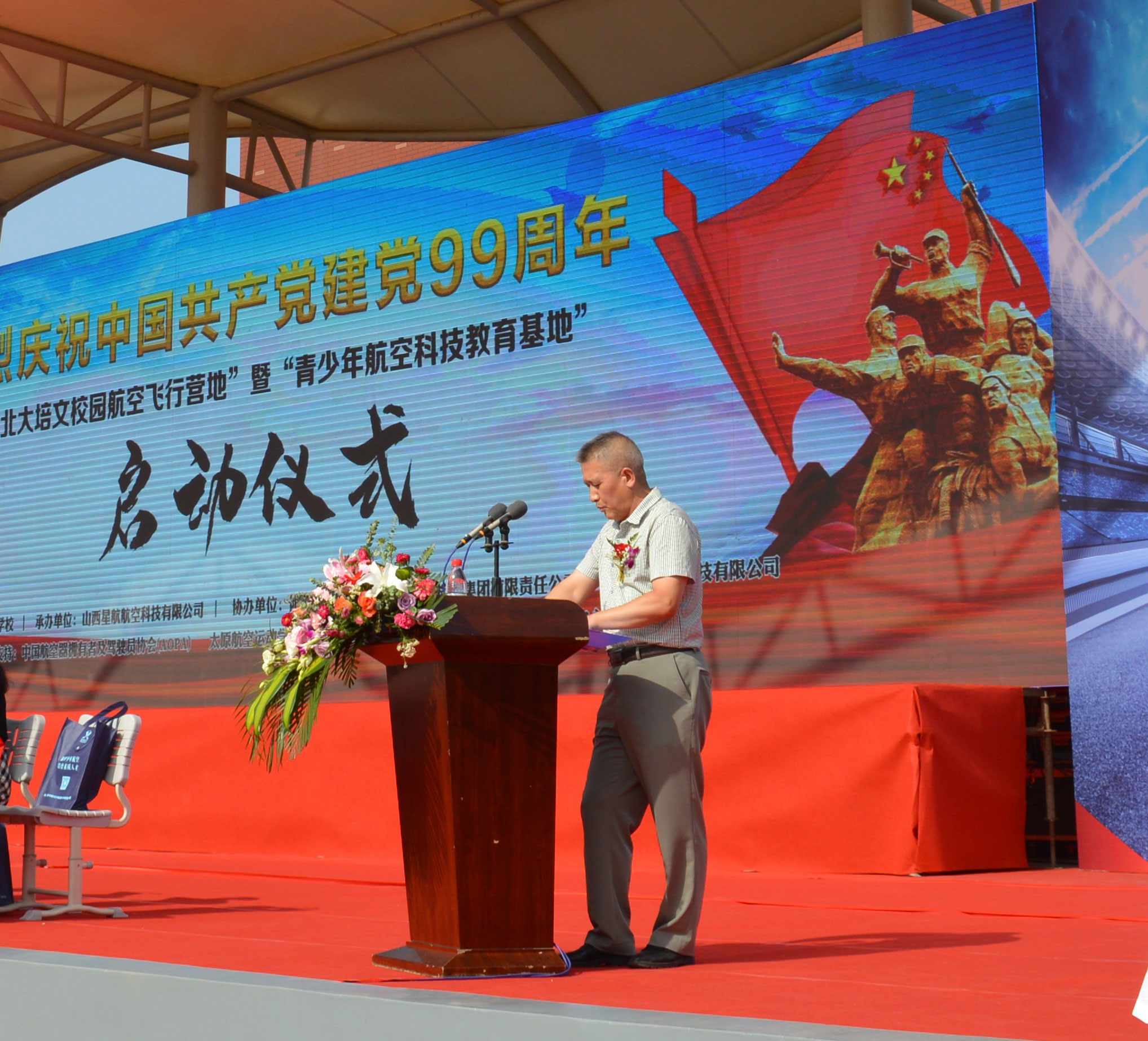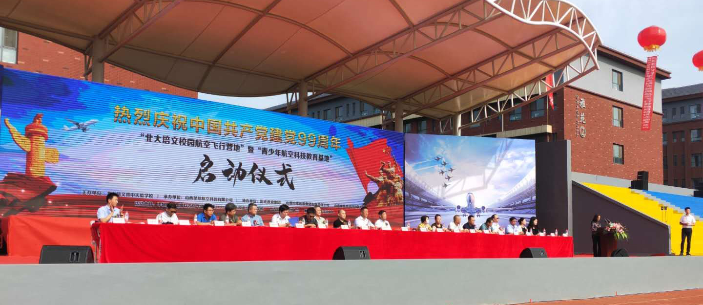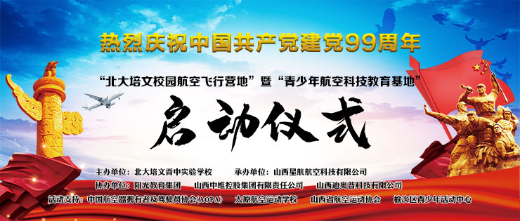 在中國共產(chǎn)黨誕辰99周年之際,為了進一步培養(yǎng)青少年的航空愛國精神、全面推動山西省航空特色教育發(fā)展,實現(xiàn)省通用航空產(chǎn)業(yè)的全鏈接。北大培文晉中實驗學校于2020年7月1日上午八點隆重舉行了“校園航空飛行營地”暨“青少年航空科技教育基地”啟動儀式。