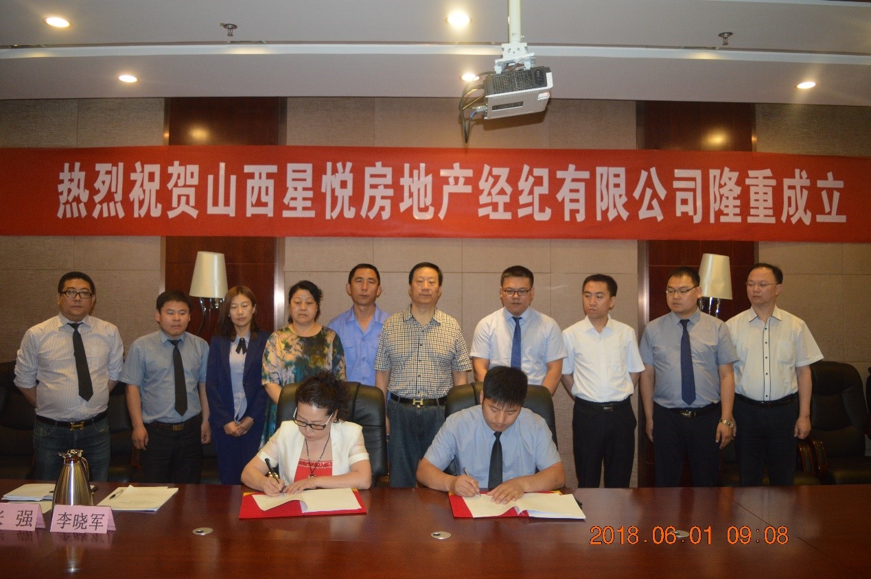2018年6月1日上午9時(shí),“山西星悅房地產(chǎn)經(jīng)紀(jì)有限公司成立大會(huì)暨簽約儀式”在星雅名都酒店4樓會(huì)議廳隆重舉行。集團(tuán)董事長總裁郭秀忠、副總裁王文萍、郭雅維、董事長助理沈習(xí)寧、經(jīng)...